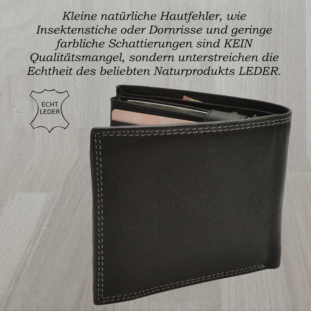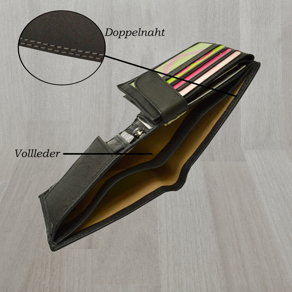 Büffelledergeldbörse Herrenbrieftasche Volllederausstattung mit Doppelnaht