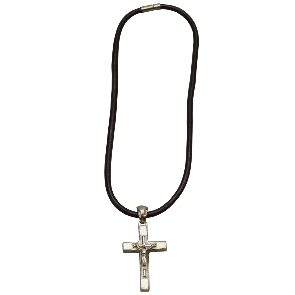 Preview: flevado Hochglanz POLIERTES EDELSTAHLKREUZ AN EINEM SEHR Breiten Leder-Halsband