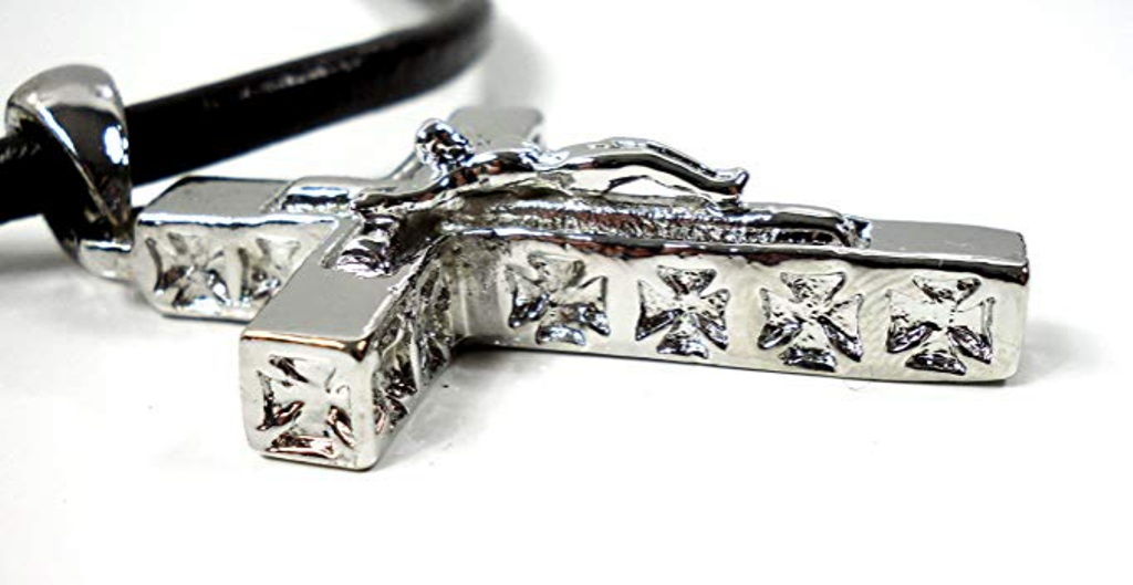 flevado Hochglanz POLIERTES EDELSTAHLKREUZ AN EINEM SEHR Breiten Leder-Halsband